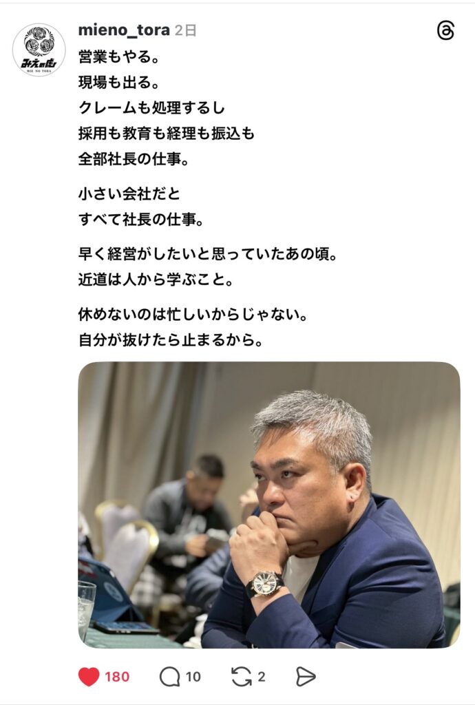 公式スレッズ👉https://www.threads.com/@mieno_tora?hl=ja